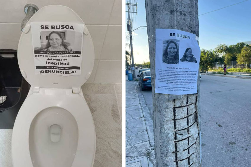 A través de redes sociales y carteles colocados en los postes de la Comisión Federal de Electricidad (CFE), han circulado imágenes con denuncias dirigidas a la rectora.
