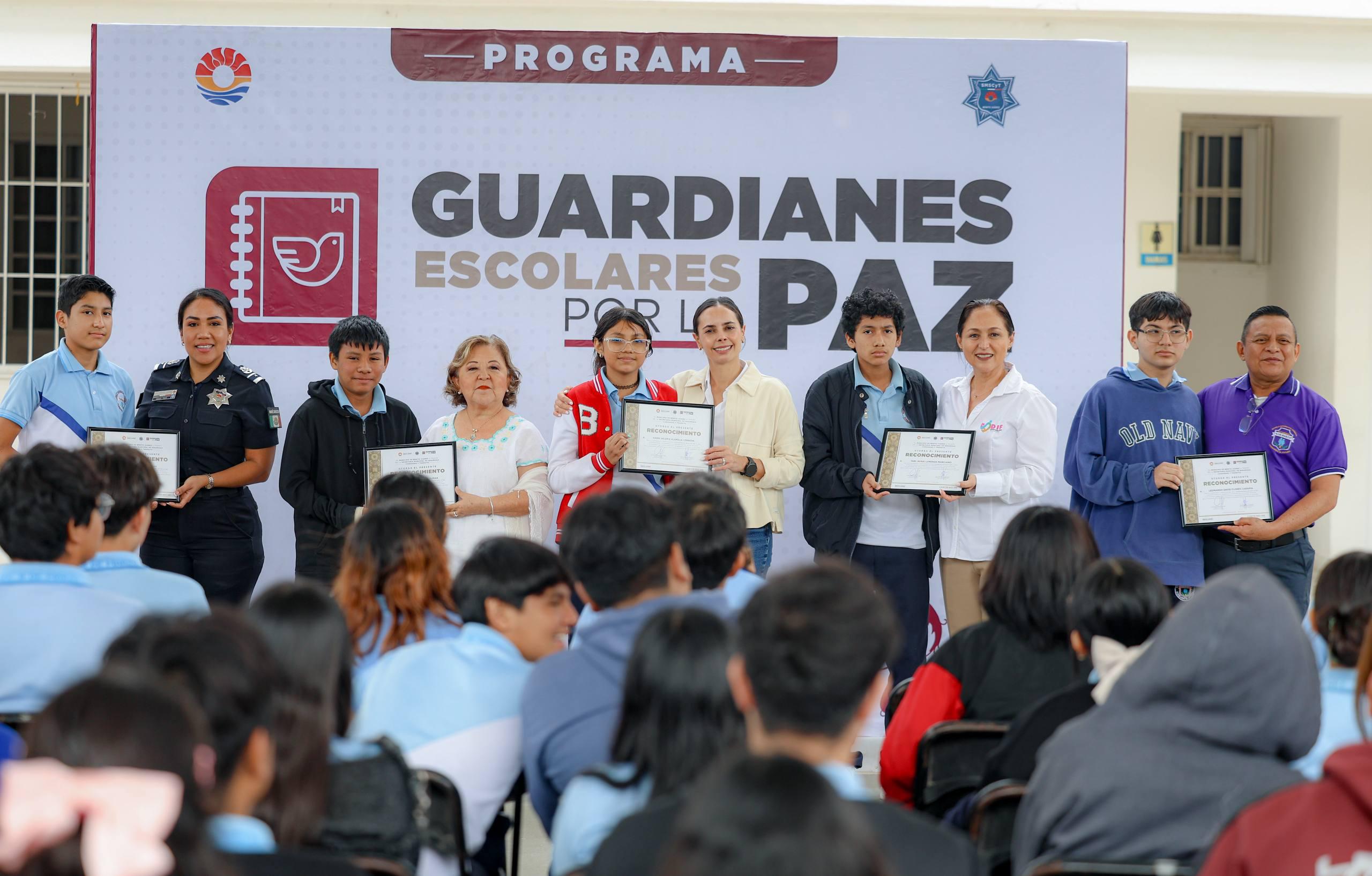 Asimismo, la directora de Prevención del Delito con la Participación Ciudadana, Zury Josabeth Rodríguez Trinidad, manifestó que desde la Secretaría Municipal de Seguridad Ciudadana se refrenda el compromiso de acompañar a las y los “Guardianes”, para seguirlos capacitando, atender los reportes que se puedan generar en coordinación permanente con todas las autoridades educativas y el respaldo del gobierno municipal.