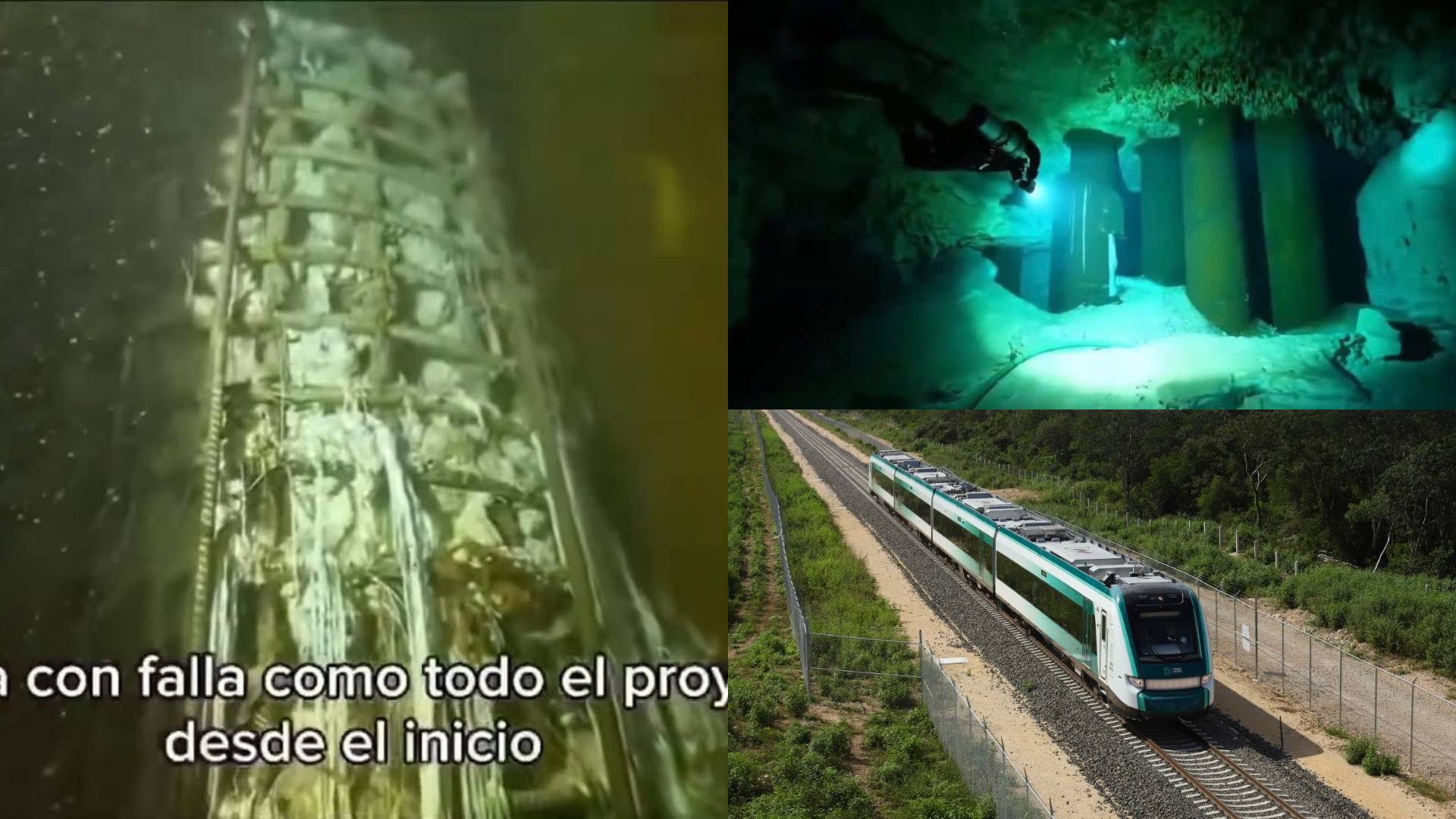 A través de videos y fotografías difundidas en redes sociales, la asociación civil Sélvame Mx exhibió columnas reventadas, camisas de acero oxidadas, varillas expuestas y derrame de concreto dentro de cenotes, pese a los compromisos oficiales de reparación.