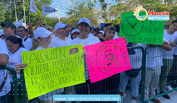 Cancún (Marcrix Noticias).- Miles de trabajadores se concentraron en la Plaza de la Reforma, frente al palacio municipal, para conmemorar el Día del Trabajo, luego de que un día antes la Secretaria de Gobierno, Cristina Torres, anunció que el desfile tradicional del 1 de mayo se cancelaba por temas electorales.