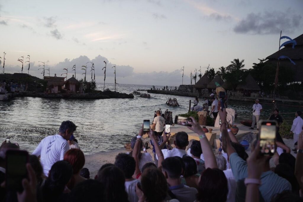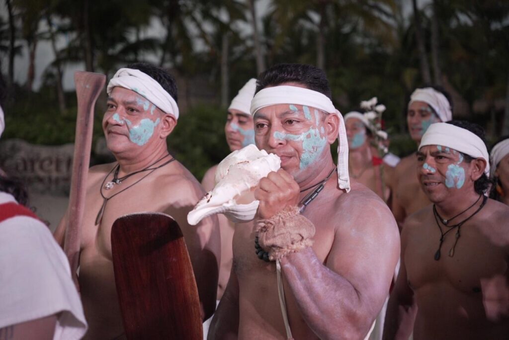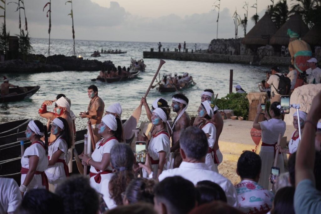 La ceremonia inició con un ritual de purificación en Xcaret, donde los participantes se caracterizaron como los antiguos mayas, preparándose espiritualmente para la travesía.
