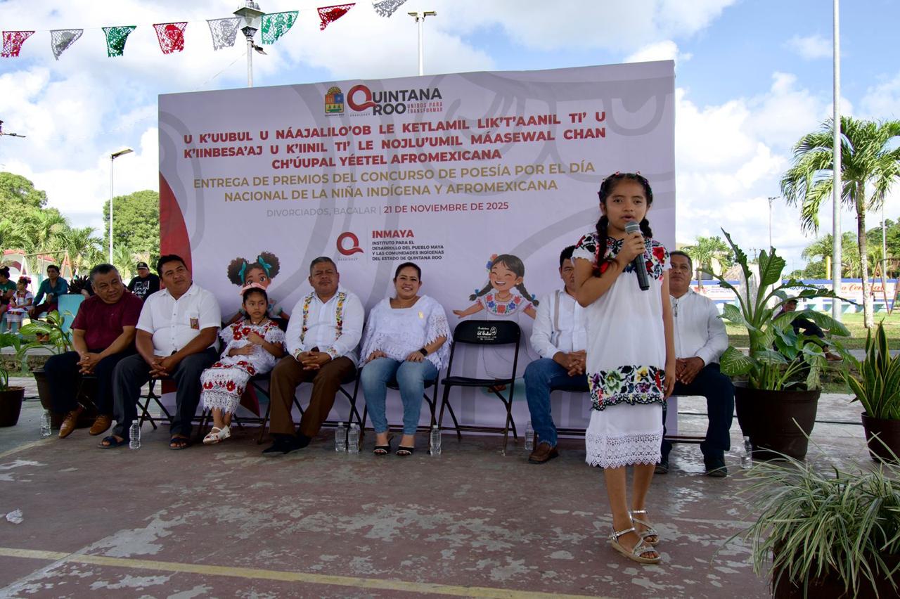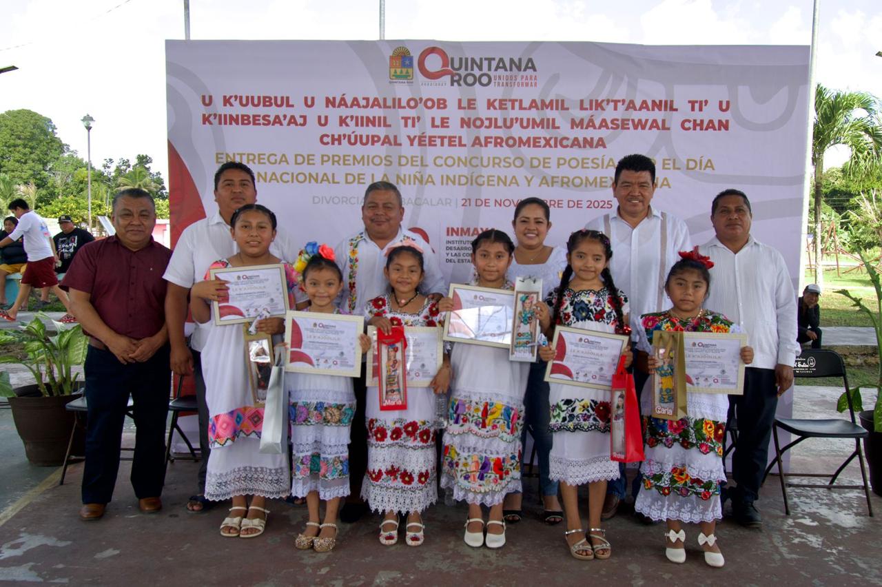 Bacalar (Marcrix Noticias).-Seis niñas resultaron ganadoras en la Segunda Edición del Concurso de Poesía para reconocer a las niñas indígenas y afromexicanas efectuado en la comunidad Los Divorciados del municipio de Bacalar.