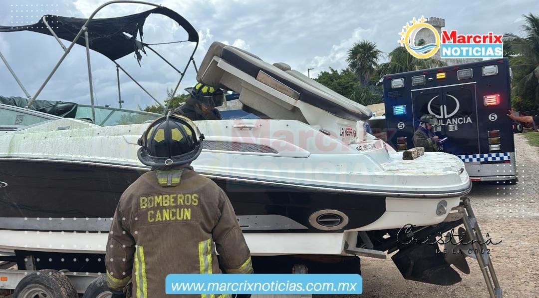 El reporte se emitió a las 14:14 horas por medio del C5. Personal de Bomberos a bordo de las unidades 966 y 954, al mando del oficial Natanael Chuc, arribó al lugar con al menos seis elementos para sofocar el incendio que consumía la lancha “La Negra”, de 25 pies de eslora y matrícula 19012779148, que se encontraba sobre un remolque, fuera del agua.