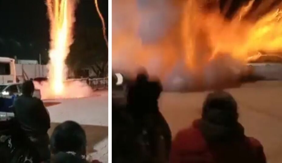 En videos que circulan en redes sociales se observa el momento exacto en el que ocurre a explosión mientras varias personas observan el espectáculo de juegos piriotécnicos.