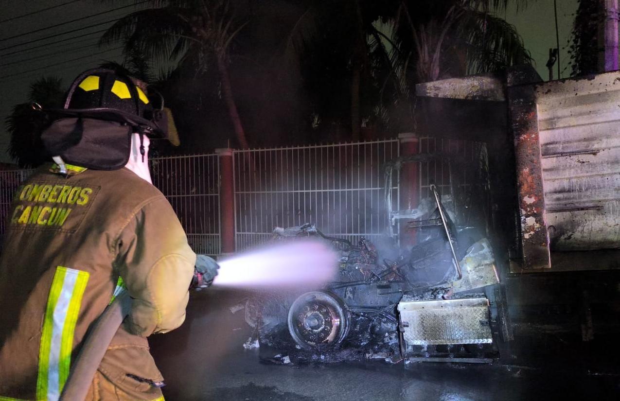Cancún(Marcrix Noticias).- El incendio de un volquete se registró en la Región 235 de Cancún luego de la explosión de un transformador debido a las fuertes lluvias que se registraron.