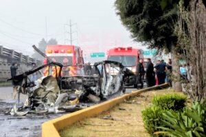 Estado de México. ( Marcrix Noticias).- Un taxi que circulaba por la lateral de la carretera México-Toluca explotó la tarde del jueves tras incendiarse la pirotecnia que llevaba en su interior, presuntamente con destino a celebraciones de la Virgen de Guadalupe, informó Protección Civil del Estado de México.