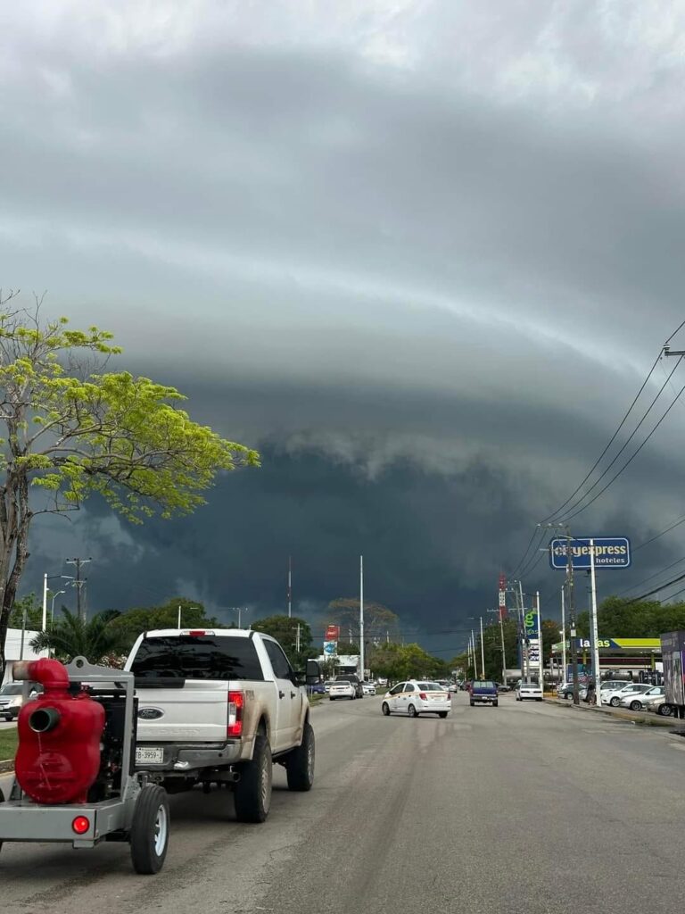 Chetumal (Marcrix Noticias)- Luego de más 11 horas de calma, nuevamente la lluvia en Chetumal cae y cada vez con mayor fuerza, tras de una rara formación de las nubes, nunca antes vistas en las calles que sorprendieron a los chetumaleños.