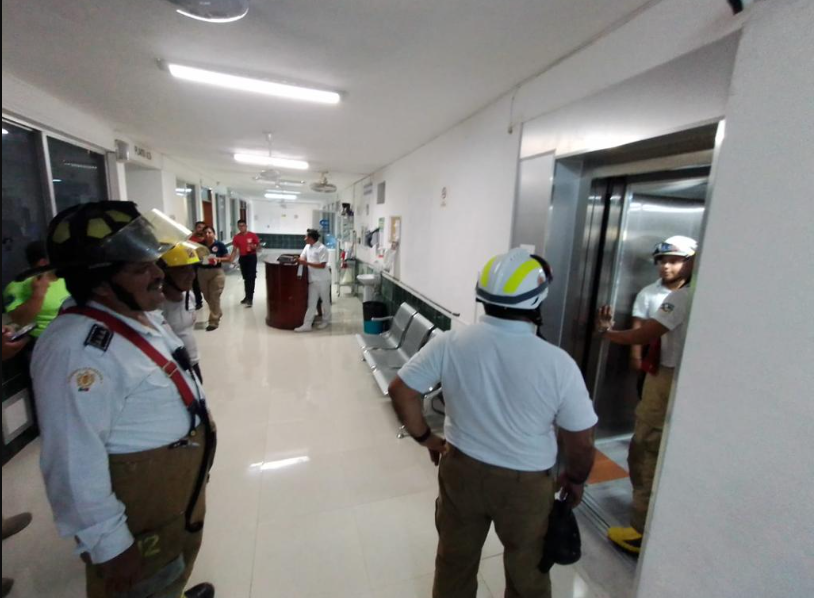 En esta ocasión fue un ascensor de un hospital privado, Clínica Campestre, en la ciudad de Chetumal, el cual presentó una falla por lo que quedaron atrapados dos paramédicos de la Unidad Médica de Bomberos y un paciente al que trasladaban al segundo piso para su atención médica.