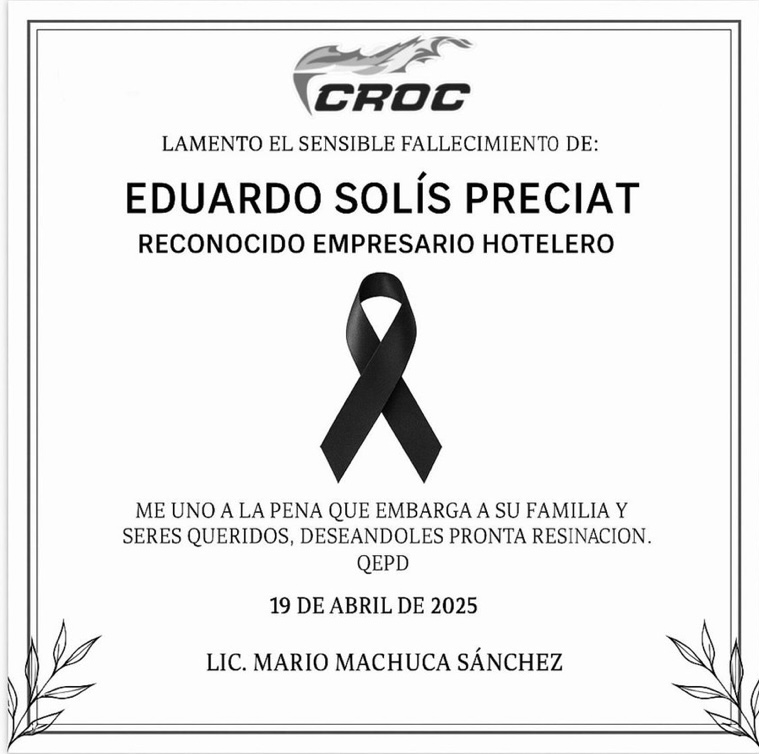 También el líder de la CROC en Cancún, Mario Machuca, ofreció sus condolencias ante la partida del empresario.