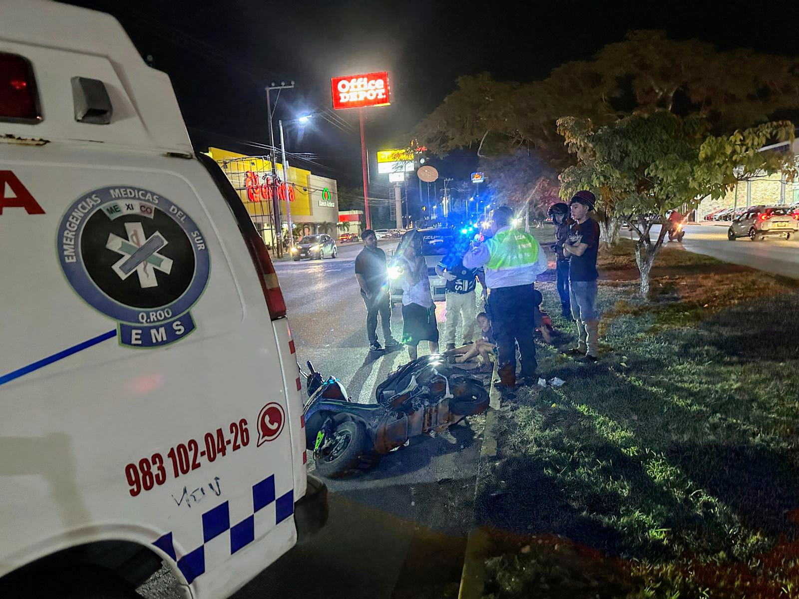 Chetumal(Marcrix Noticias).- Un aparatoso accidente ocurrido la noche del martes dejó a una familia lesionada frente a Plaza Las Américas, en la ciudad de Chetumal. Una pareja y su hijo, que viajaban a bordo de una motocicleta, fueron embestidos por un automóvil cuando intentaban cruzar la avenida Los Héroes.