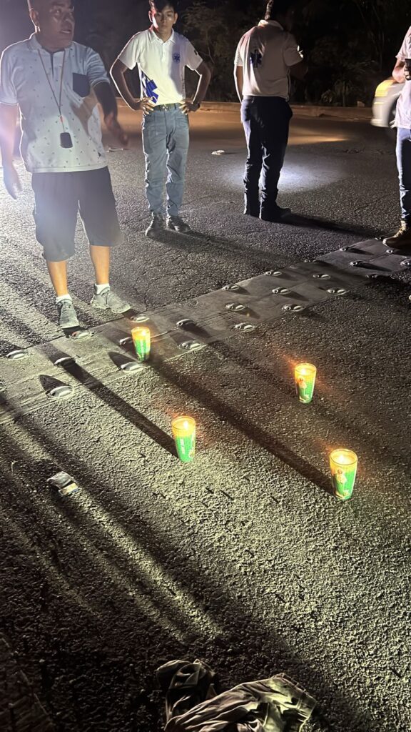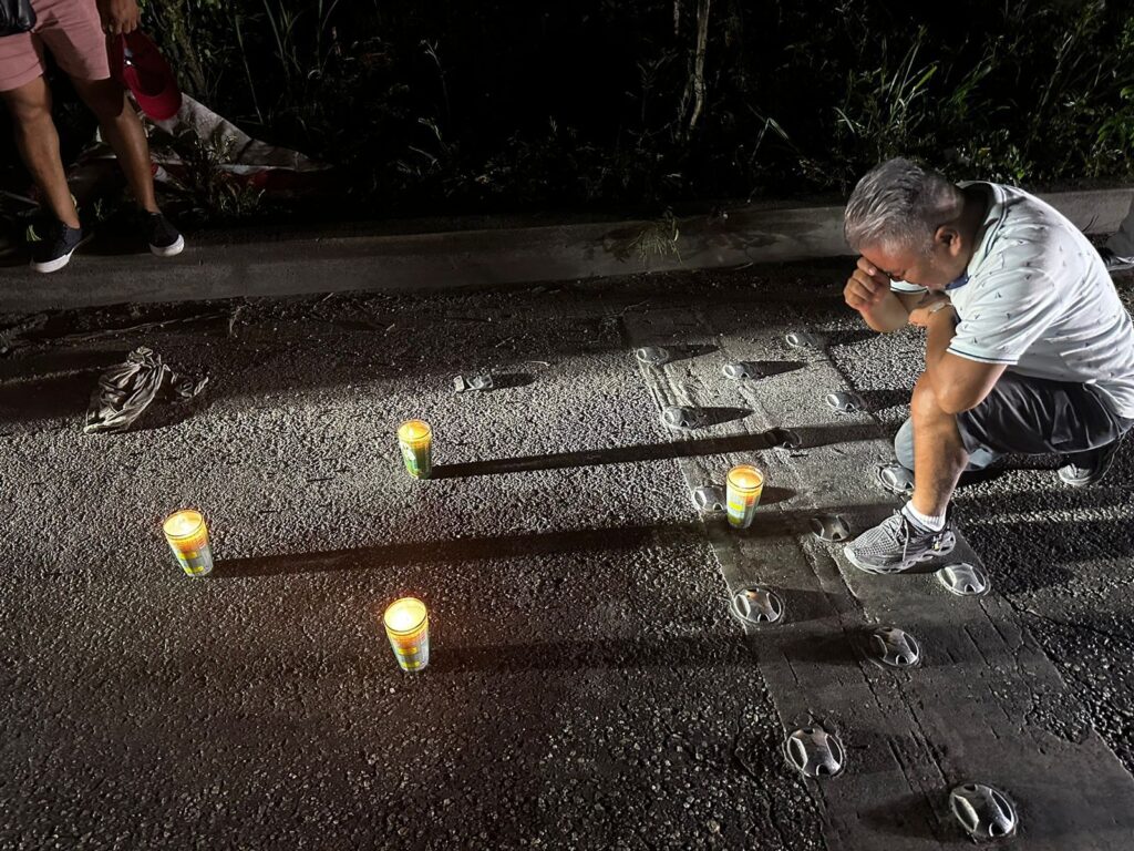 En el sitio en donde perdió la vida al ser brutalmente atropellado, los amigos y familiares colocaron veladoras, llevaron flores y elevaron sus oraciones para el eterno descanso del periodista Martín Ibañez “El Puma”.