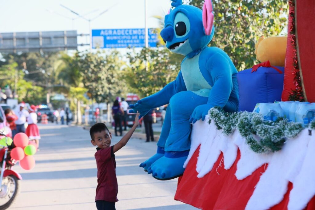El desfile inició en el salón “Aliss” para continuar hacia la colonia “La Loma” y concluir en el domo “Hugo Ravell” con un show navideño que disfrutaron los pequeñines.