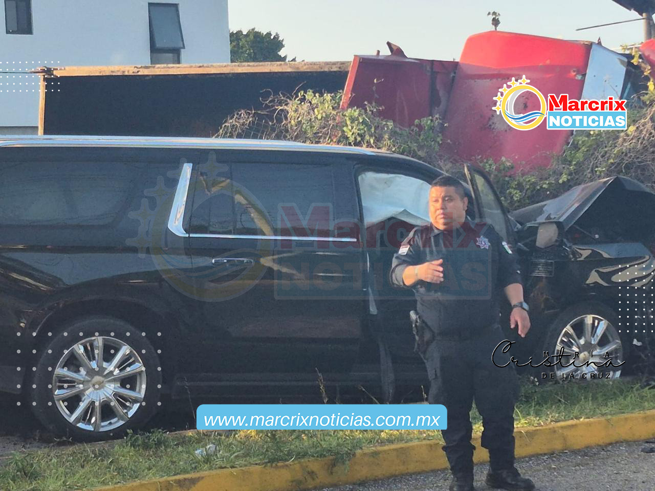 El incidente ocurrió en las inmediaciones de la entrada a Puerto Morelos , donde un camión volteo, al parecer por falla mecánica se quedó sin frenos e impactó a los otros 11 vehículos.