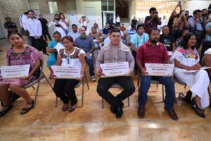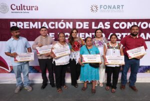 La gobernadora Mara Lezama de igual forma destacó el buen trabajo sobre madera de las y los artesanos de Puerto Morelos, así como las creaciones de artesanas y artesanos textiles de otros municipios también galardonados, al señalar que atrás de cada obra se encuentra una historia de vida.