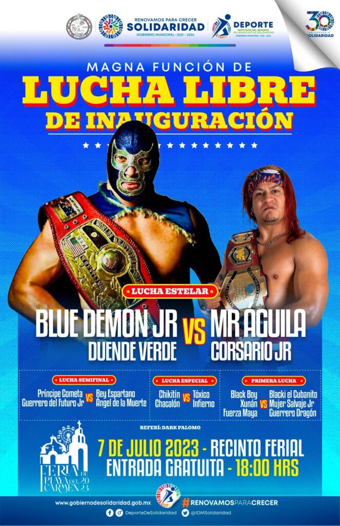 “Es una feria renovada para todos del siete al 16 de julio, con la función de lucha libre que presenta, por primera vez aquí, al gran Blue Demon Jr.; una cabalgata que abarcará la Quinta Avenida, vaquería, diversos artistas sobre el escenario, juegos mecánicos y todo esto será completamente gratis. No se dejen engañar por si les quieren vender los boletos” enfatizó la edil.