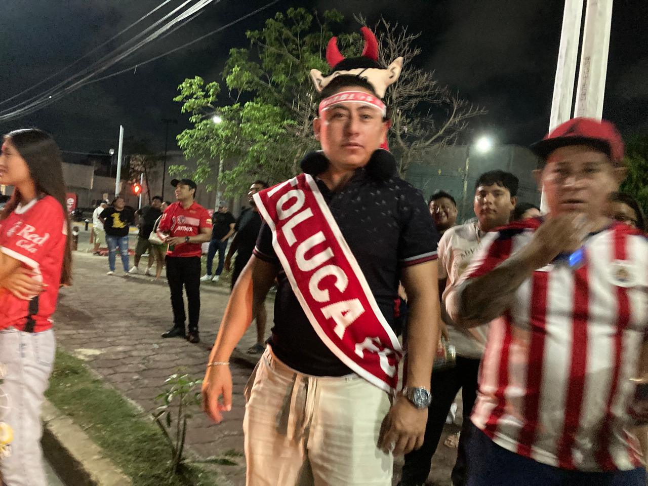 Celebración, a la que llegaron pocos, pero escandalosos seguidores de los “Choriceros”, portando sus jersey, así como también diablitos de peluche y bufandas rojas.