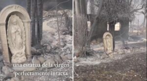 En medio de la destrucción, la figura de la Virgen de Guadalupe intacta, se ha convertido en símbolo de esperanza para la comunidad afectada, por los incendios en California.