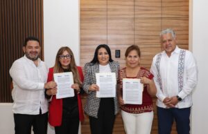 Puerto Morelos, Quintana Roo, (MARCRIX Noticias), 27 de febrero de 2025.– La presidenta municipal Blanca Merari Tziu Muñoz firmó un convenio de colaboración administrativa con la secretaria de Finanzas y Planeación (Sefiplan), Martha Parroquín Perez, y Ricardo López Rivera, director del Instituto Geográfico y Catastral del Estado, para la consolidación y actualización de la plataforma catastral y registral de Puerto Morelos.