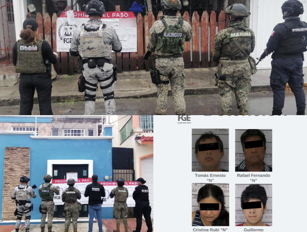 Cozumel (Marcrix Noticias)-En un operativo coordinado, la Fiscalía General del Estado (FGE) de Quintana Roo, con apoyo de la Guardia Nacional, SEDENA, SEMAR y la Secretaría de Seguridad Ciudadana (SSC), ejecutó dos cateos simultáneos en Cozumel, asegurando drogas y deteniendo a cuatro presuntos narcomenudistas.