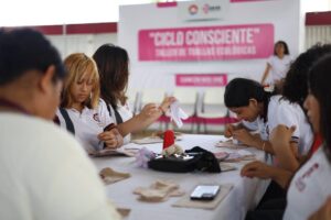 Cancún, Q. R., (MARCRIX Noticias), a 08 de mayo de 2025.- Como promoción a la sostenibilidad y la salud femenina, en el marco del Día Mundial del Cáncer de Ovario, la Presidenta Municipal, Ana Paty Peralta, asistió al taller “Ciclo consciente” para la elaboración de toallas ecológicas menstruales realizado en el domo del Centro de Bachillerato Tecnológico Industrial y de Servicios (CBTIS) No. 272 “Sor Juana Inés de la Cruz”, para alumnas de diferentes semestres.