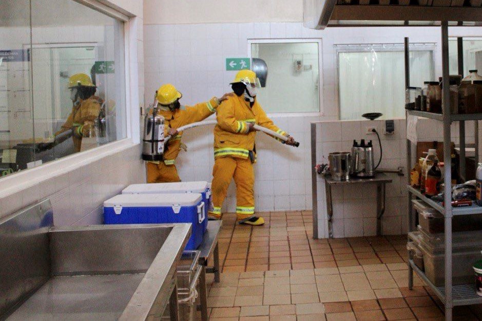 Autoridades llevan a cabo simulacro de un incendio en el área de cocina, originado en una freidora