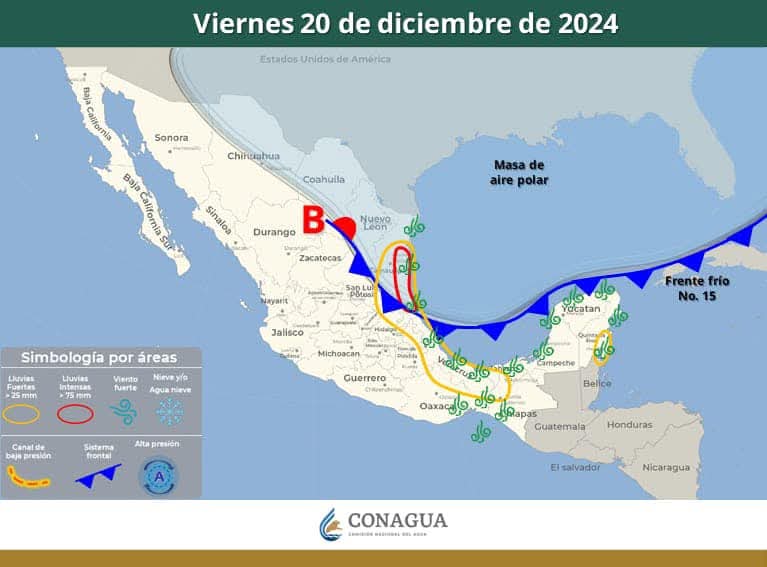 Cancún(Marcrix Noticias).-!Debido al acercamiento del Frente Frío 15, se pronostican los siguientes efectos en el Estado de Quintana Roo: