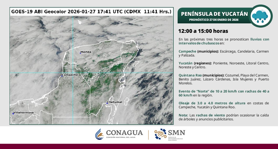 En el ámbito de protección civil, el Gobierno del Estado emitió alertas preventivas ante el descenso térmico, principalmente en comunidades rurales. Desde la noche previa, el Frente Frío 30 comenzó a sentirse con mayor intensidad, registrándose temperaturas de hasta 16 grados en la Zona Maya, según datos preliminares.