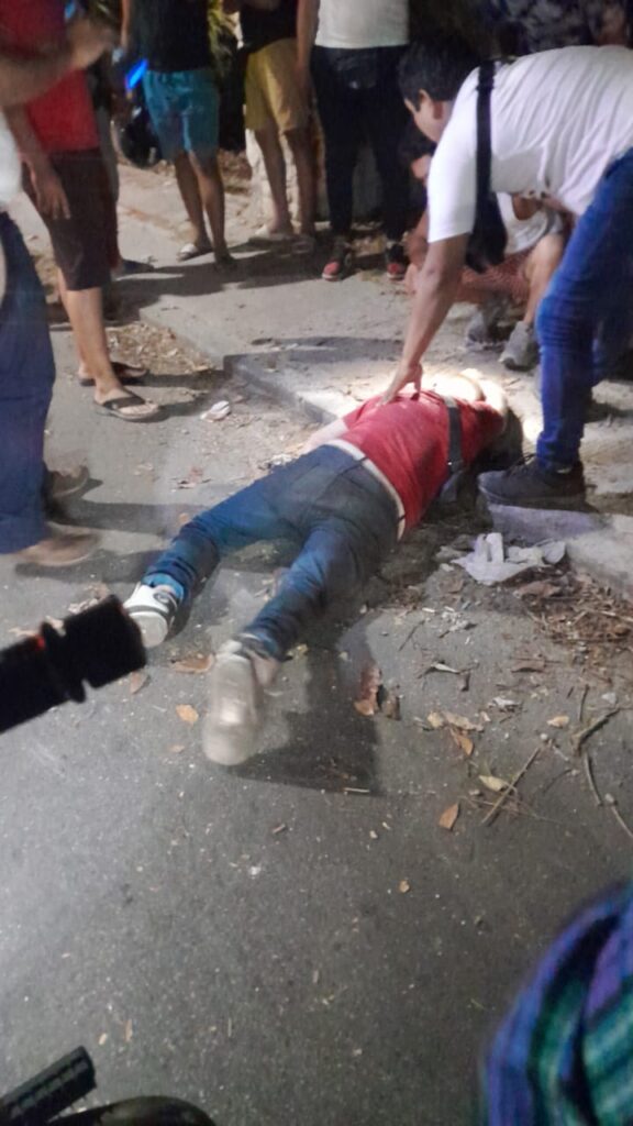 Chetumal, Marcrix Noticias.- Un fuerte accidente ocurrió esta noche en la Calzada del Centenario -antigua carretera Chetumal-Calderitas, en donde un motociclista derrapó y al parecer se fracturó el cráneo.