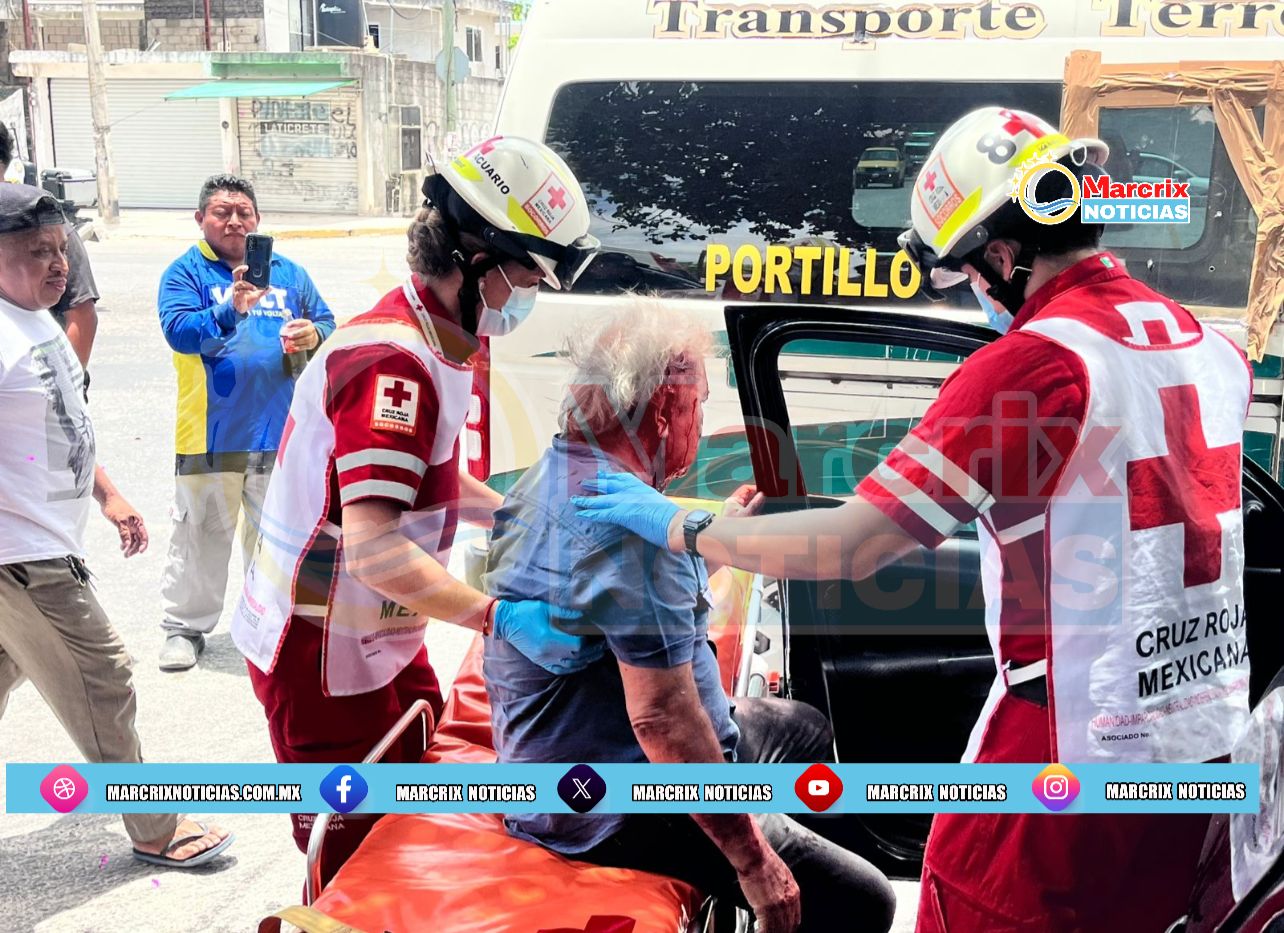 Uno de los heridos es un adulto mayor, quien fue impactado por una camioneta de transporte público al invadir la vía preferencial en la región 229.