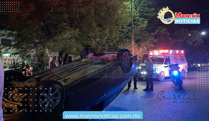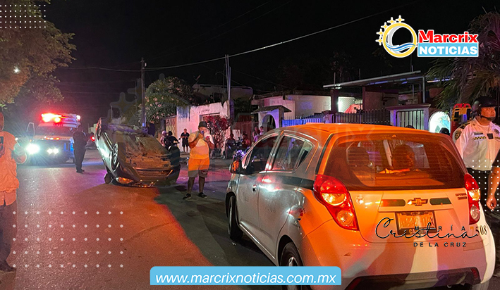 De acuerdo a testigos, el taxi impactó al vehículo Versa, el cual quedó volcado llantas hacia arriba del fuerte choque.
