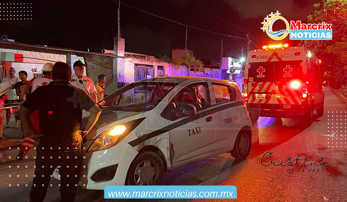 Cancún (Marcrix Noticias).- La noche de hoy viernes, se registro un accidente de tránsito donde se vieron involucrados un taxi con número económico 508 del Sindicato Andrés Quintana Roo y un vehícúlo Versa Nissan con placas de Tabasco.