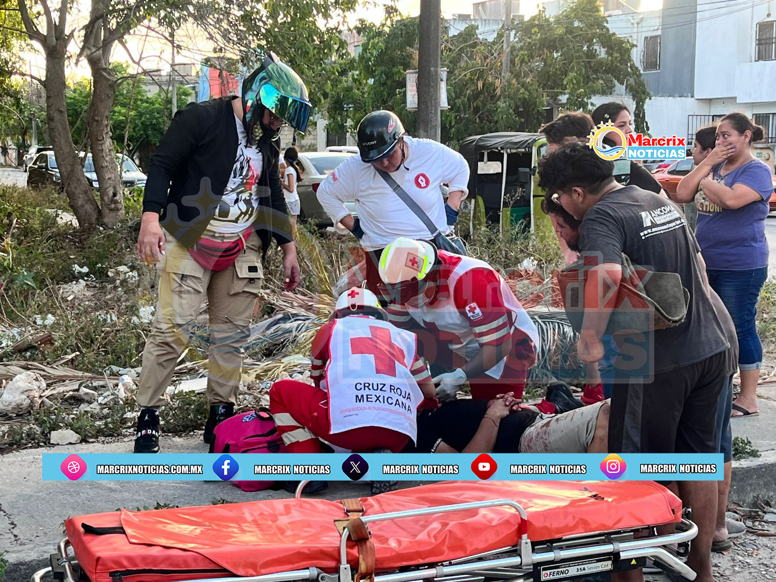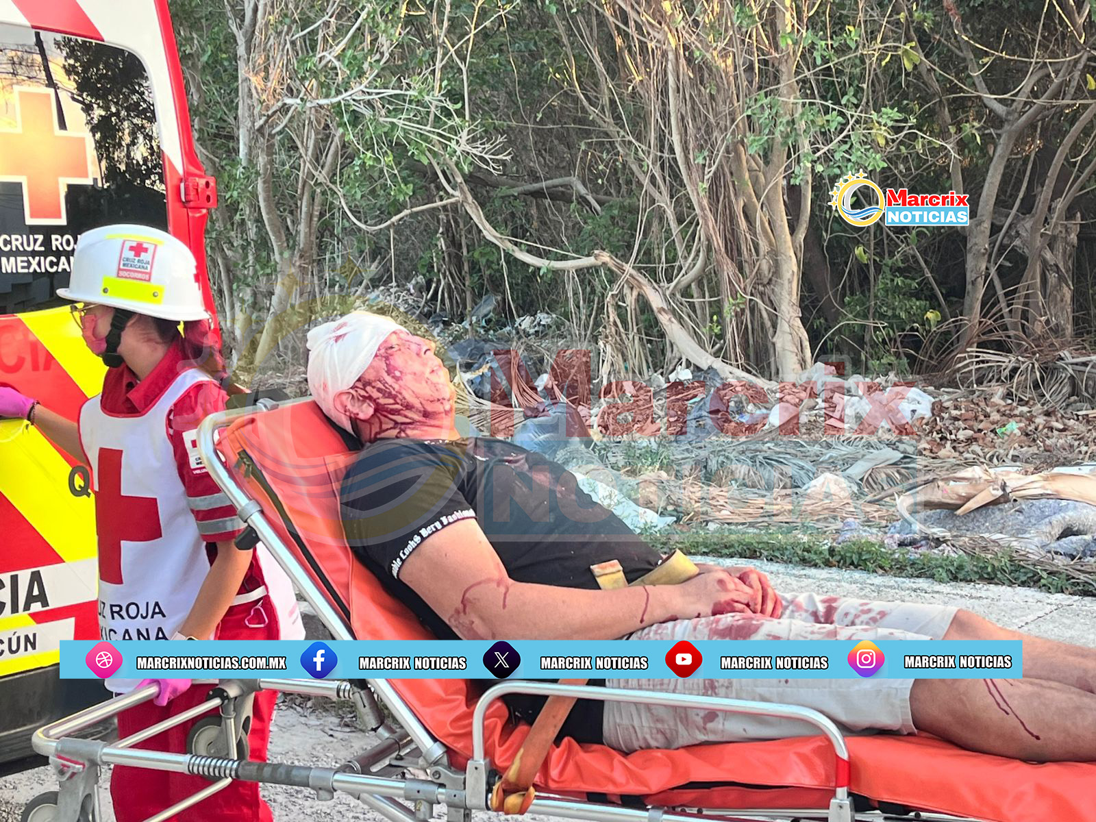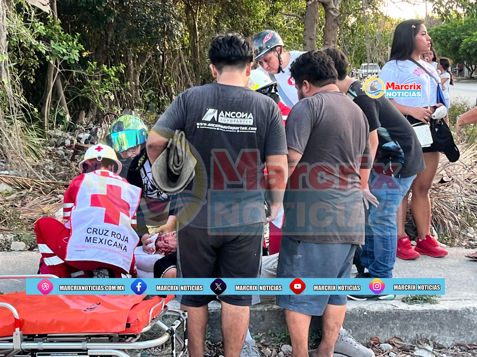 Al lugar llegaron paramédicos a bordo de una ambulancia de la Cruz Roja, los cuales brindaron atención médica al conductor lesionado y lo trasladaron al Hospital General de Cancún.