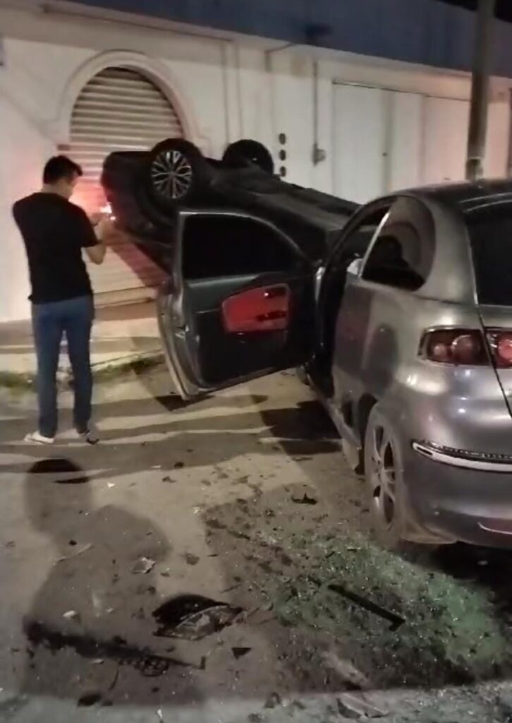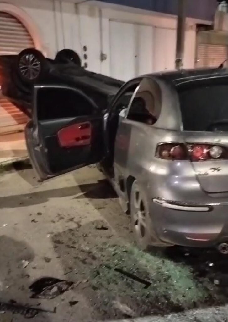 El Peritaje de los policías de Tránsito indica que el automóvil Jetta color negro transitaba a exceso de velocidad y al no respetar su alto obligatorio al llegar a la avenida Independencia, fue impactado por el automóvil Ibiza color gris, el cual también transitaba a exceso de velocidad, pero alcanzó a frenar y golpeó al Jetta, el cual quedó volcado.