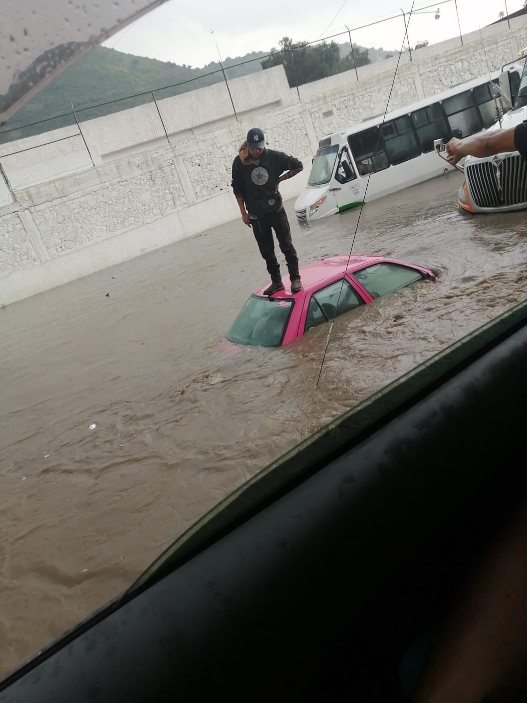 A la altura de la zona conocida como El Gallito algunos conductores quedaron atrapados en sus vehículos y han tenido que subir al toldo para no ser alcanzados por el agua pluvial.