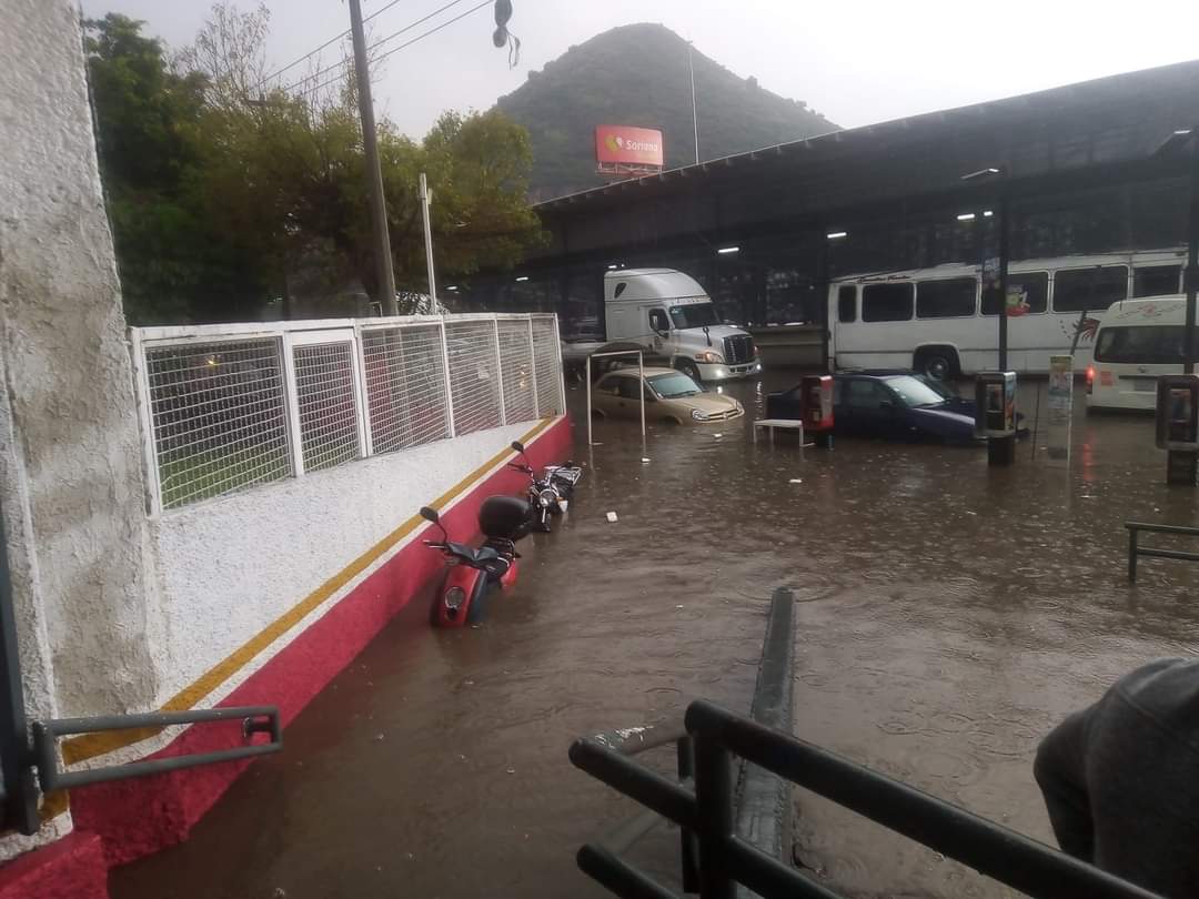 Ecatepec (Marcrix Noticias).- La lluvia que se registra la tarde de este martes provocó inundaciones en varios puntos de Ecatepec, principalmente en la Vía Morelos, lo que impide la circulación de vehículos por la acumulación de agua.
