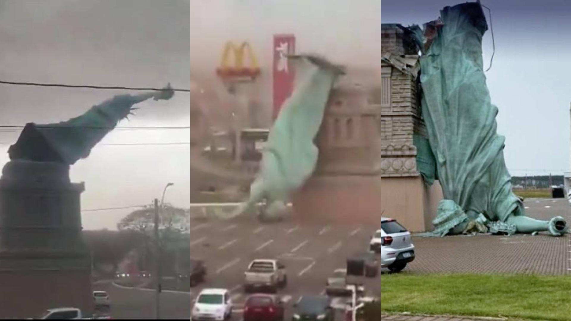Brasil (Marcrix Noticias).– Una réplica de la Estatua de la Libertad se desplomó este lunes en la ciudad de Guaíba, en la región metropolitana de Porto Alegre, al sur de Brasil, luego de ser impactada por intensas ráfagas de viento provocadas por un fuerte temporal que afectó al estado de Río Grande do Sul.