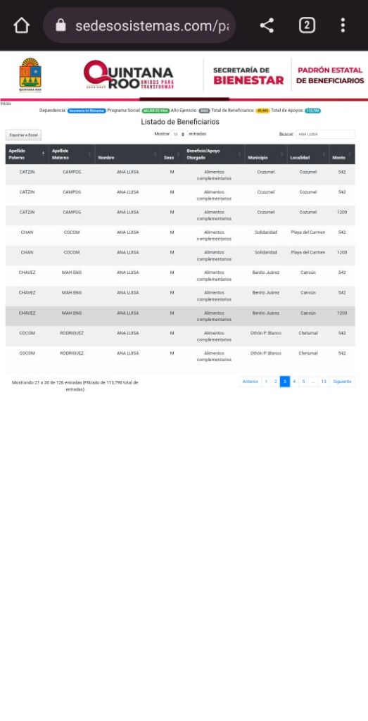 También está recibiendo apoyos la funcionarias Rosario Aban Mukul, subsecretaria de Desarrollo humano de la Secretaría del Bienestar.