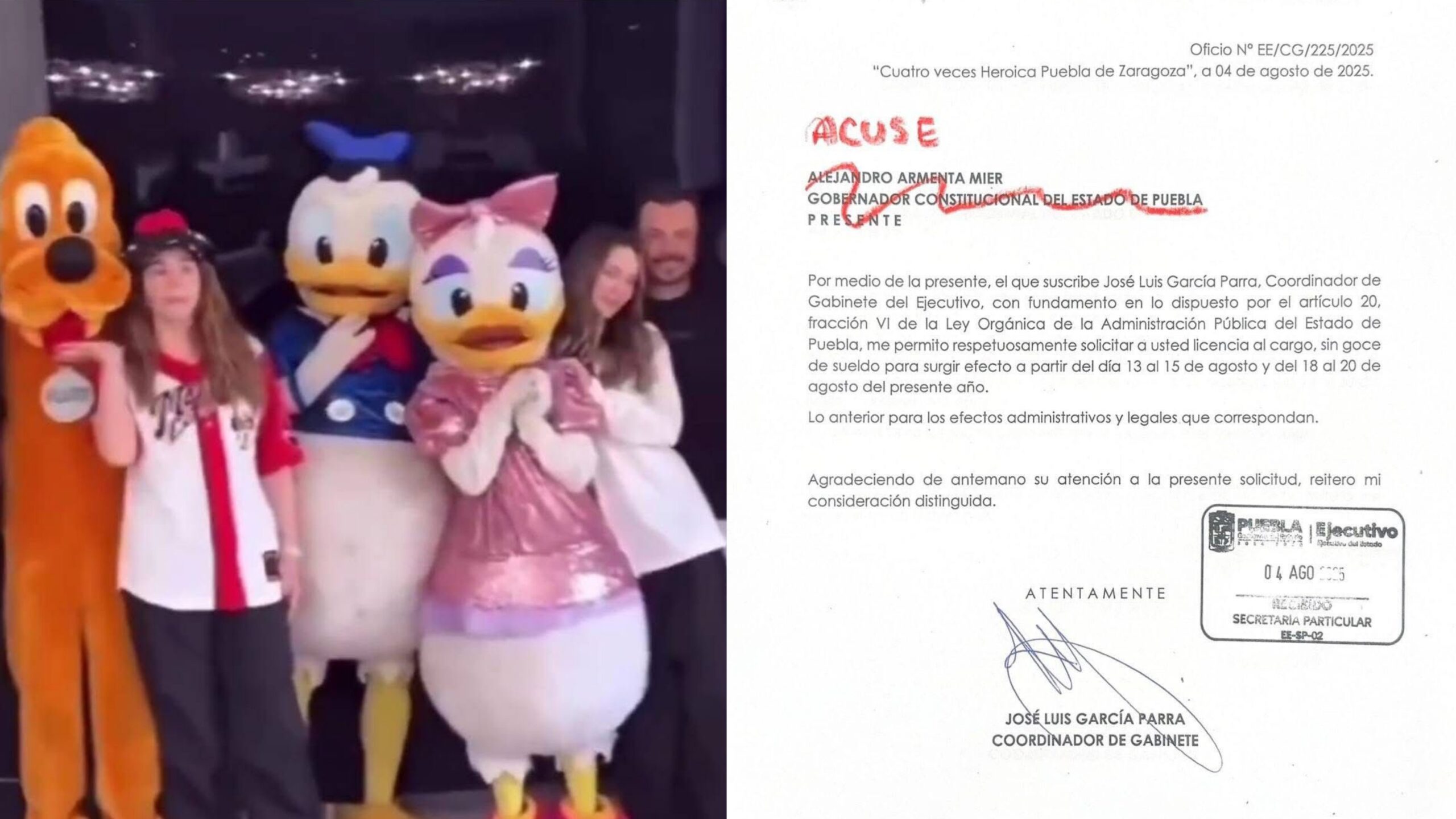 En las imágenes compartidas en redes sociales, la cantante aparece sonriente junto a los personajes icónicos de Disney, como Mickey, Minnie y Daisy, mientras que la presencia del funcionario llamó la atención de seguidores y medios.