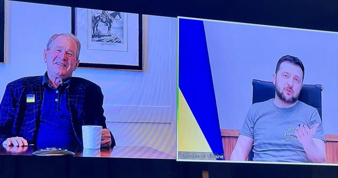 Ucrania (Marcrix Noticias).- El presidente ucraniano, Volodímir Zelenski, mantuvo una conversación por videoconferencia con el expresidente de Estados Unidos George W. Bush, quien lo calificó como “el Winston Churchill de nuestro tiempo” por su respuesta a la invasión rusa de Ucrania.