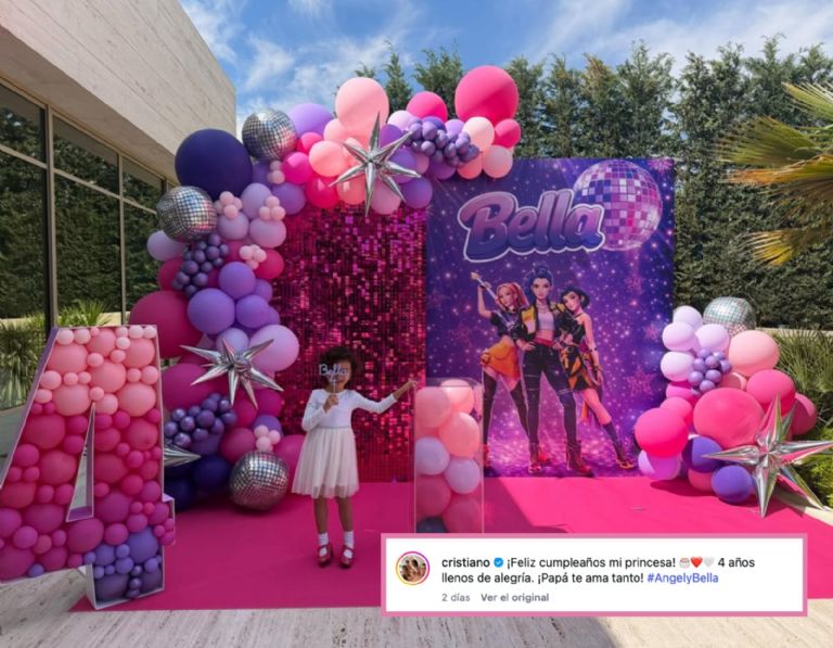 A través de un video compartido en sus plataformas digitales, la pareja de Cristiano Ronaldo dejó ver cómo transformó su residencia en un escenario festivo para celebrar los cuatro años de su hija Bella Esmeralda. La decoración destacó por su estilo llamativo y colorido, con predominio de tonos rosa y morado.