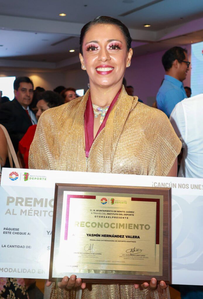 Como complemento, se otorgó el Premio Municipal al Mérito Deportivo a Yasmín Hernández Valera, como Mejor Entrenadora de Deporte Adaptado en paradanza (Estándar, Latin y Freestyle), por haber participado en la renombrada competencia internacional de Para Dance Sport en Dearborn 2024, más los Juegos Nacionales sobre Silla de Ruedas y Amputados, además del Paranacional CONADE 2023.