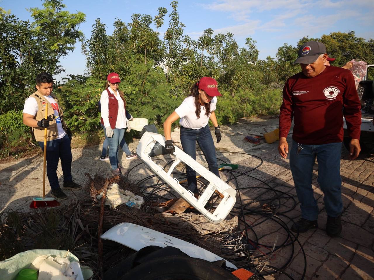 Al avanzar con la recolección de desechos en diferentes puntos, la Presidenta Municipal ayudó con el retiro no solo de basura doméstica, sino también artículos singulares como llantas, vidrio, estructuras de aire acondicionado, tanques de helio, cables, inodoros, escombro, tela, entre otros.