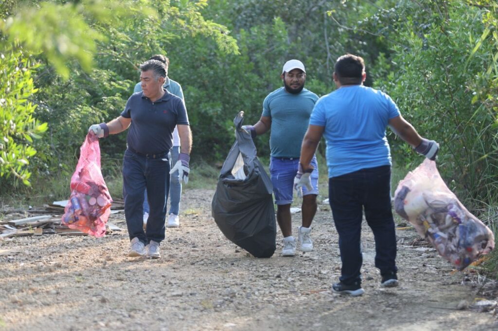 Una vez que la Presidenta Municipal dio el silbatazo inicial, como parte de la logística, los voluntarios realizaron equipos de trabajo para distribuirse en ocho manzanas en el borde del manglar y así abarcar 5.6 kilómetros de extensión, ayudados de herramientas como rastrillos, pinchos y guantes de protección.