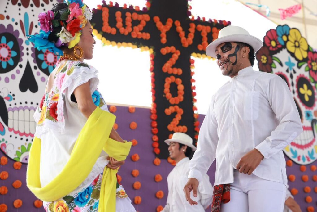 Familias disfrutaron de la gastronomía y presentaciones artísticas durante el “Festival de Luz y Vida Entre Vivos y Muertos”, encabezado por la alcaldesa Atenea Gómez.