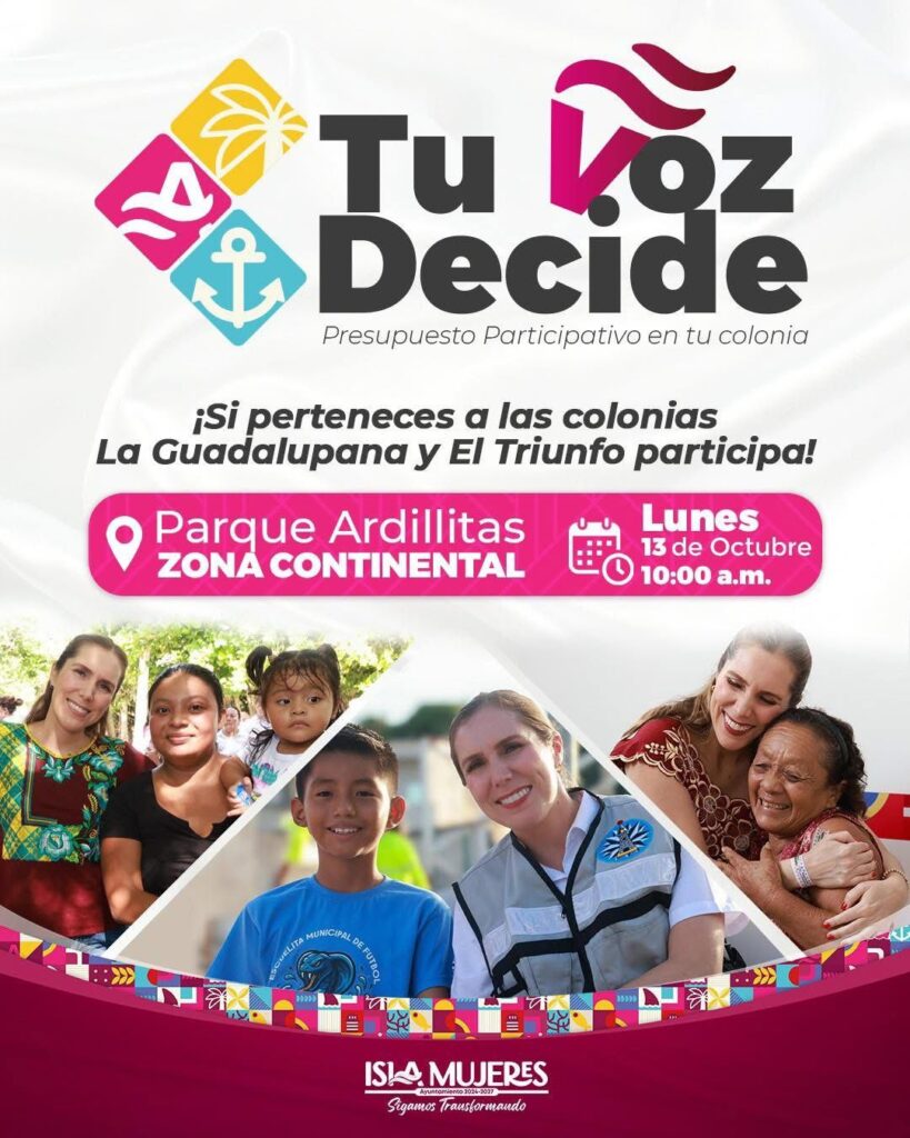 El Gobierno Municipal invita a todas y todos los habitantes de Isla Mujeres a sumarse a esta iniciativa bajo el lema “Tú decides”, ya que su voz y participación son esenciales para seguir construyendo un municipio más justo, ordenado y con mejores servicios para todas las familias.