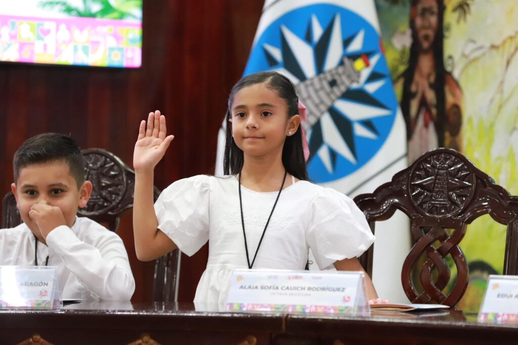 Niñas y niños de Isla Mujeres participaron como autoridades para expresar propuestas sobre temas sociales, educativos y comunitarios.