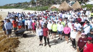 Isla Mujeres (Marcrix Noticias).– El Gobierno de Isla Mujeres, que encabeza la Presidenta Municipal, Atenea Gómez Ricalde, llevó a cabo una jornada especial del Limpiatón, en la playa del Mar Caribe, a la altura de la colonia La Guadalupana, como parte de las acciones integrales para el cuidado del medio ambiente y la atención al sargazo.