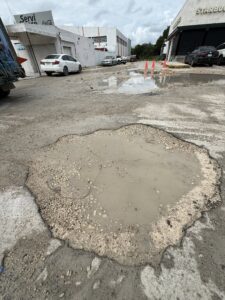 Lejos de tratarse de una calle secundaria o de una colonia con rezagos históricos, las afectaciones se localizan en una zona estratégica para la actividad comercial y turística, donde se observan baches de gran tamaño, asfalto deteriorado y encharcamientos constantes que complican la circulación vehicular y peatonal.