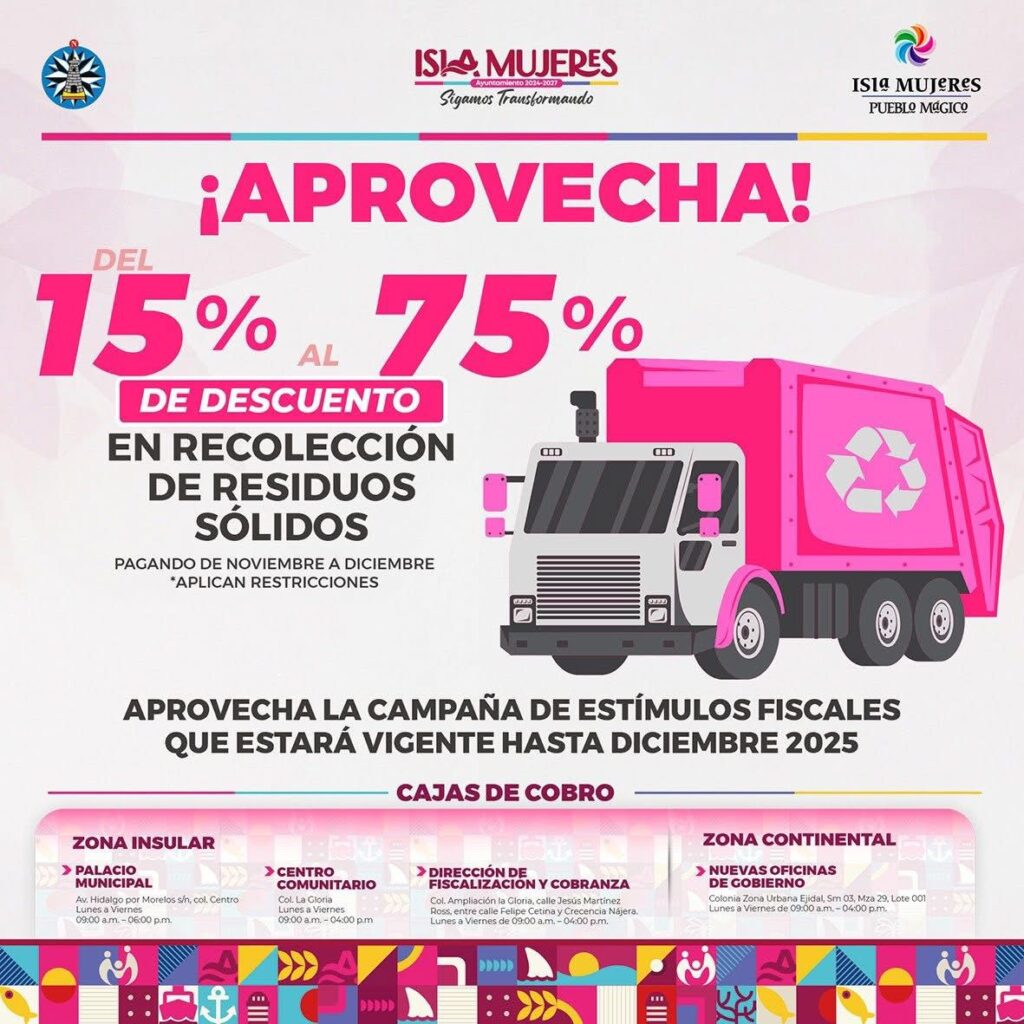 Isla Mujeres (Marcrix, Noticias).-Con la finalidad de apoyar la economía de las familias isleñas, el Gobierno de Isla Mujeres que preside la alcaldesa Atenea Gómez Ricalde, invita a las isleñas e isleños a aprovechar el programa de estímulos fiscales “Regulariza tus impuestos”.