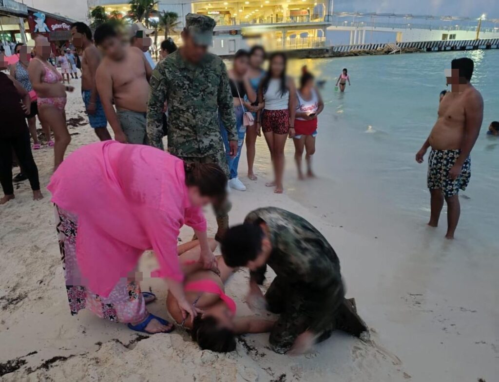 Esta persona fue llevada a la orilla del mar y recibida por elementos de la Policía Turística para atenderle médicamente y descartar cualquier complicación a su salud.